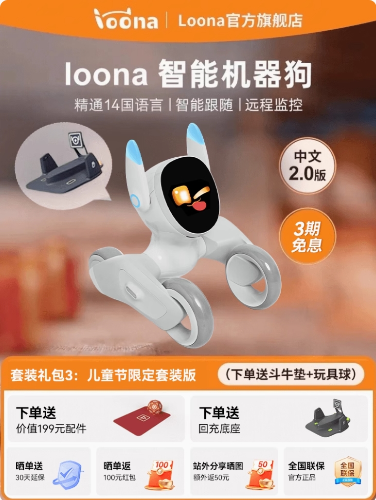 商品名称:Loona机器狗露娜智能宠物机器狗语音指令AI具身智能机器人语音对话编程机器人玩具儿童节生日礼物